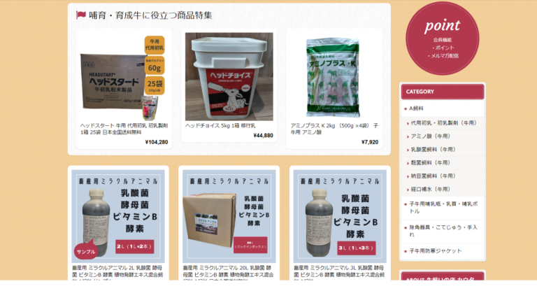 繁殖農家・肥育農家・酪農家・大動物獣医に役立つA飼料・機器材を販売する会社です。